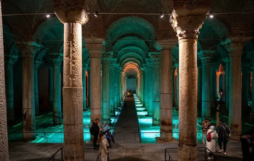 The Basilica Cistern, located in Istanbul, Turkey, is an ancient underground water reservoir built during the Byzantine period, in the 6th century. Also known as the "Yerebatan Sarayı" or "Sunken Palace," it was constructed to provide water to the city in case of siege or drought. This remarkable structure covers an area of about 9,800 square meters and has a capacity of around 80,000 cubic meters of water. Its most striking features include its impressive columns, some of which are recycled from earlier Roman structures, and the atmospheric lighting that creates a captivating ambiance. Visitors can stroll along the raised walkways above the water, marveling at the engineering ingenuity of the past. Exploring the Basilica Cistern offers a fascinating journey through Istanbul's history and architecture, making it a must-visit destination for anyone intrigued by ancient wonders.
